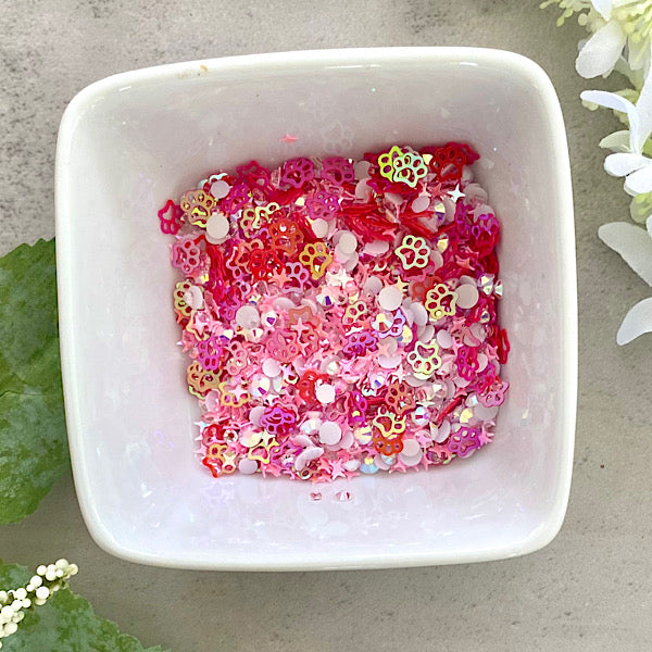 This is Scrappy Tails Crafts hand mixed Embellishment Mix (Number 176.) This mix includes a generous 2 1/2 to 3 teaspoons of embellishments (equal to 13 grams).